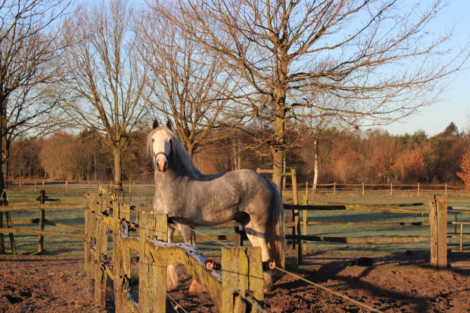 Hij werkt mee als voorpaard en is de leider van de kudde. Hij is nu een 3 kwart jaar onder het zadel en doet dat prima.