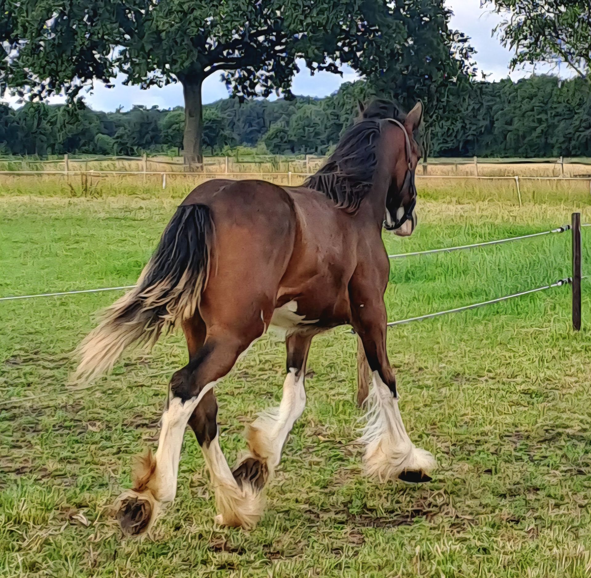 Troy is de laatste aangekochte Shire deze ruin is 12 jaar. Rustig en stabiel, makkelijk te rijden wel een beetje...eigenwijs en een beetje onhandig in de omgang. We hebben hem al veel bijgeleerd inmiddels en de kudde heet hem de fijne kneepjes van hoe gaan we met elkaar om bij gebracht.