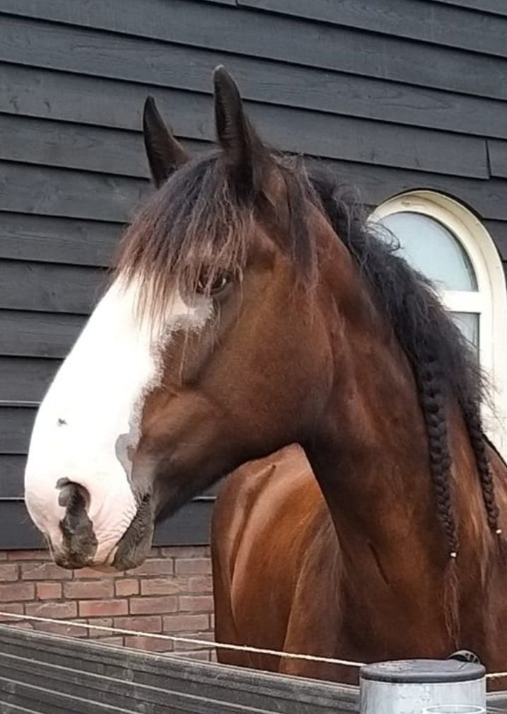 Mijn aller eerste Shire liefde aangekocht als veulen van 8 mnd. Trots op haar enorme werklust en lieve stabiele karakter.